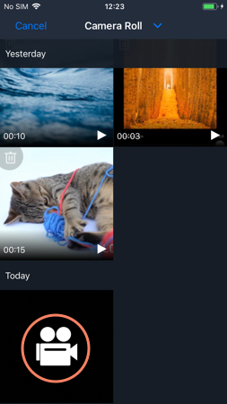 Choose the video you want to edit or shoot it right in the program by pressing the video camera icon at the bottom line of the screen.